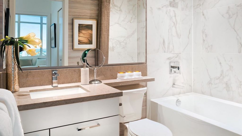 Airy 9’ ceilings Laminate wood-finish flooring Expansive glazing Front-loading washer and dryer 2-5-10 New Home Warranty Generous balconies or patios