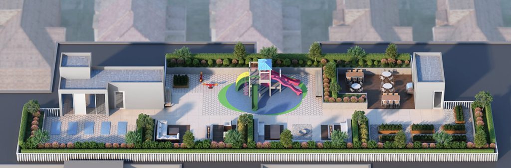 Rooftop Lounge Yoga & Tai-Chi Area EV Charging Station Green Space Toddler Playground
