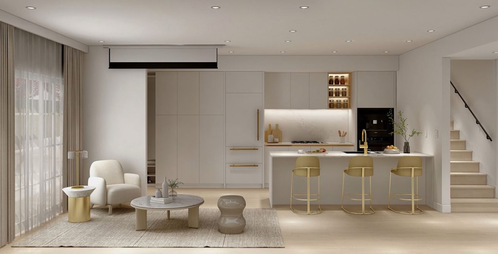 Laurel 32 townhomes are carefully planned and detailed, and have been created for modern family living with contemporary and minimalist concept. Laurel32 is a clever piece of architecture that fits perfectly into the neighbourhood. The two buildings create a landscaped, secluded courtyard between them. The finishes are made up of red bricks and beige stucco recalling classical British architecture with its clean and sophisticated look. Manicured landscaped private rooftop decks and courtyards plus concrete pavers for every home.