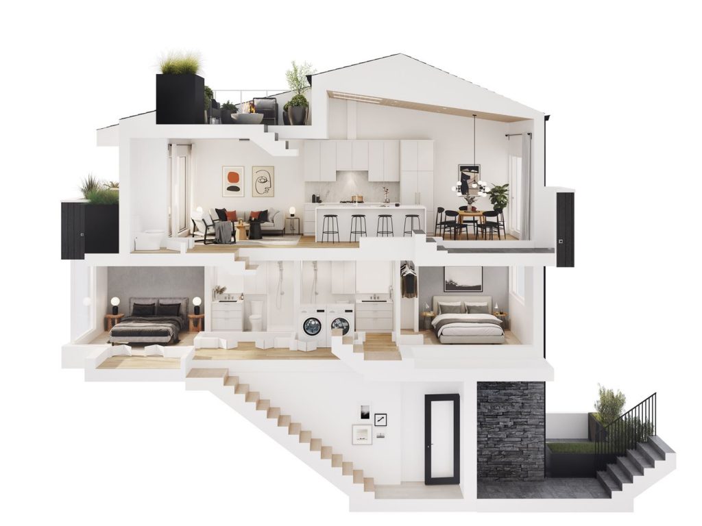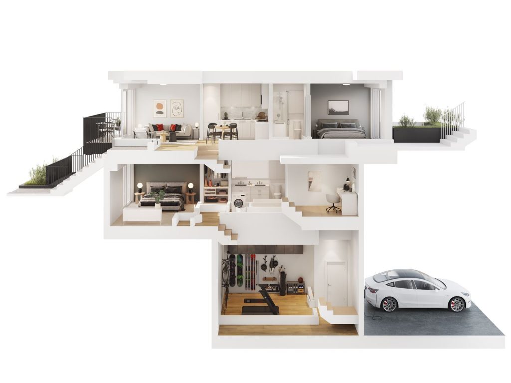 Private Rooftop Decks EV Charging Storage Amenity Room Landscaped Courtyard